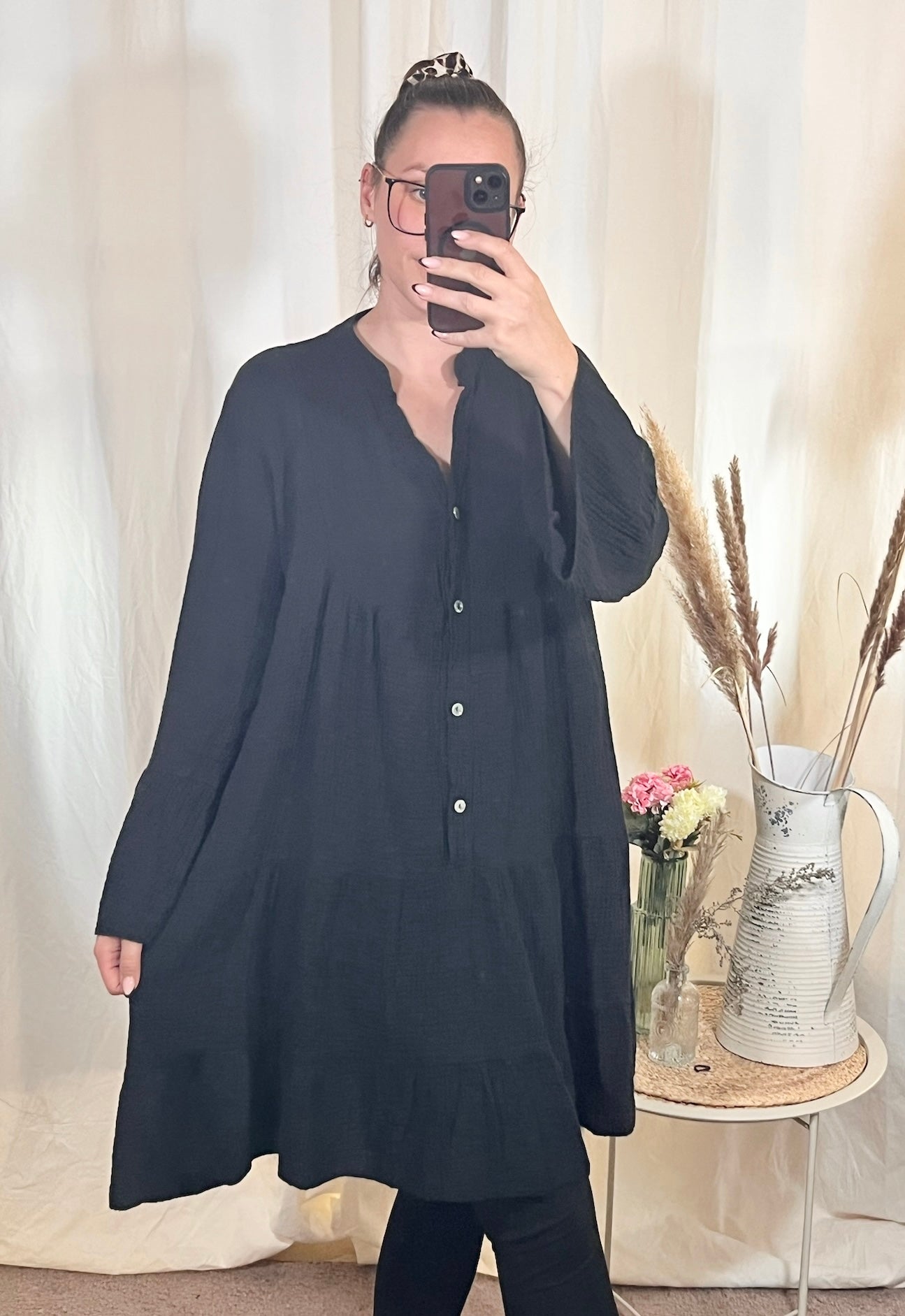 Musselinkleid in Schwarz