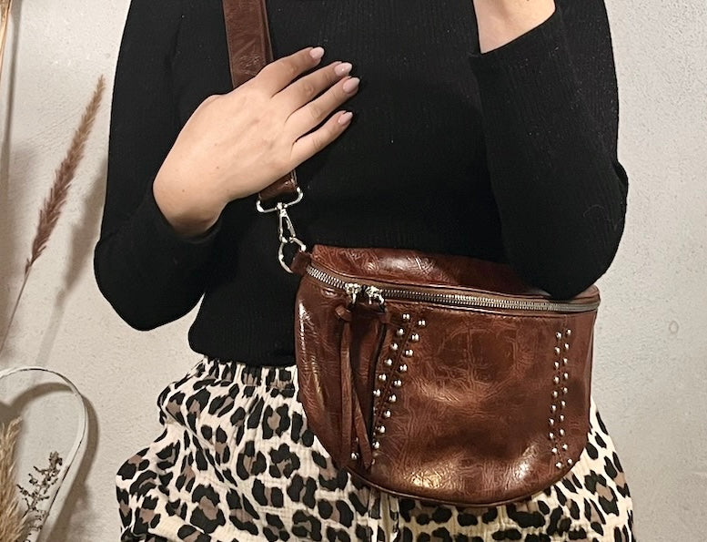 abnehmbarer und verstellbarer mehrfarbiger Schultergurt, Reißverschluss, geschlossene Gesäßtasche.
